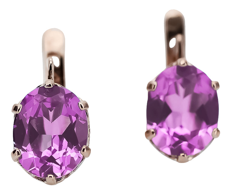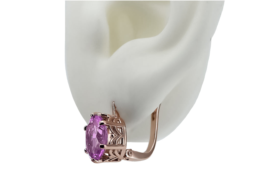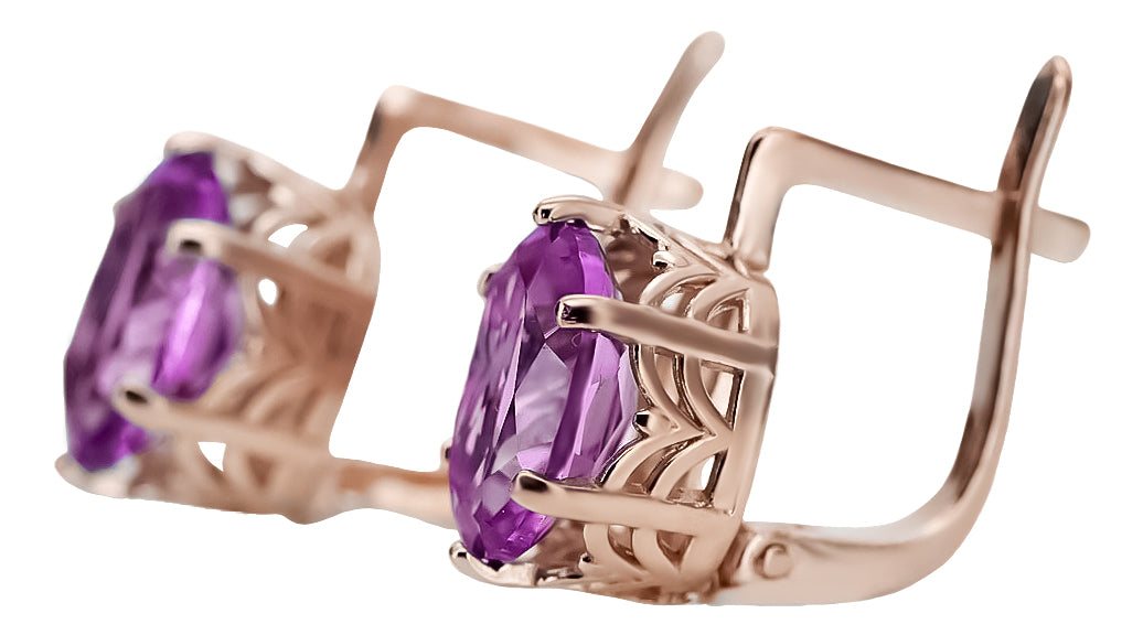 Rose pink 14k 585 gold amethyst earrings vec003 Vintage Russian Soviet style vec003r-am