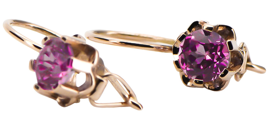 Rose pink 14k 585 gold amethyst earrings vec019 Vintage Russian Soviet style
