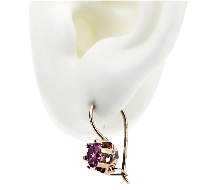 Rose pink 14k 585 gold amethyst earrings vec019 Vintage Russian Soviet style vec019r-am