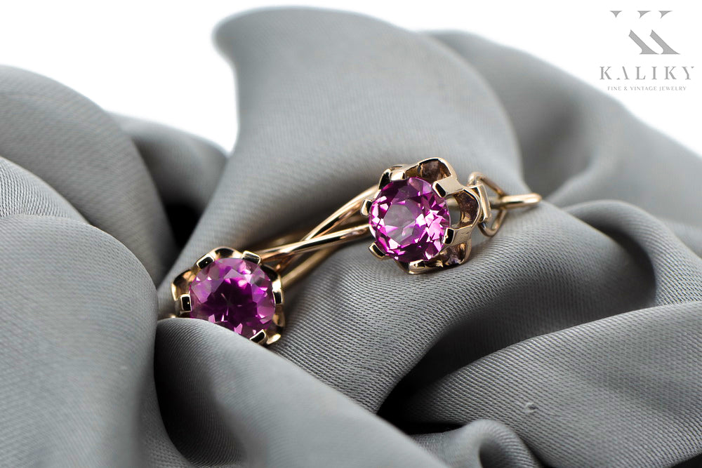 Discover the captivating allure of Soviet jewelry and embrace the unique beauty of these amethyst earrings. A splendid addition to any collection of luxury gold jewelry.