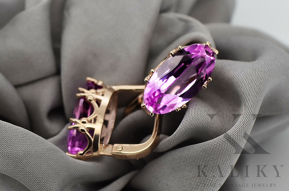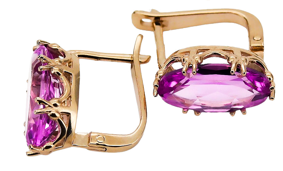 Rose pink 14k 585 gold amethyst earrings vec021 Vintage