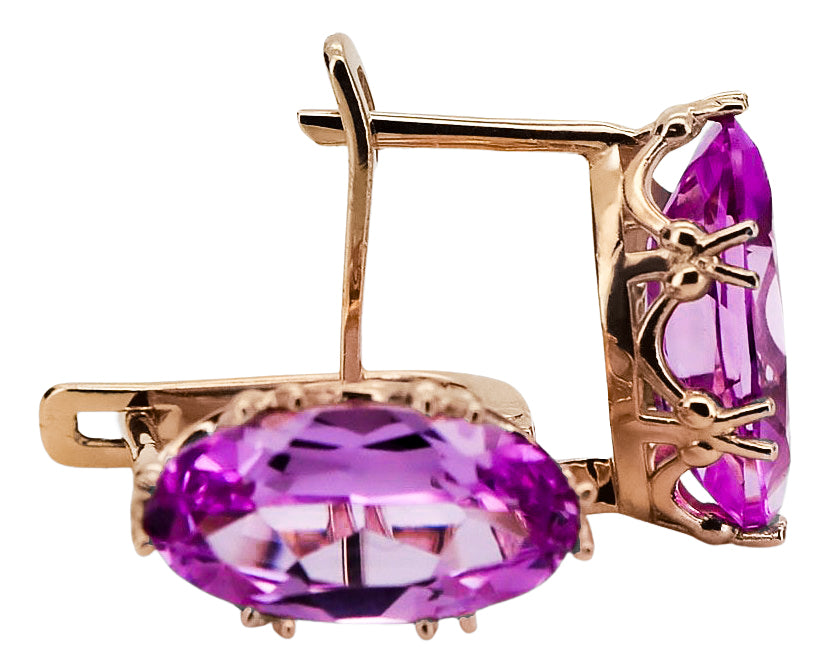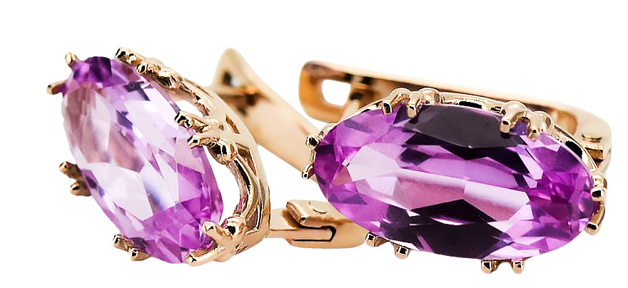 Indulge in the allure of a bygone era with these exquisite Rose pink 14k 585 gold amethyst earrings vec021. A testament to the enduring beauty of Russian vintage jewelry, these earrings whisper tales of Soviet elegance and timeless sophistication. Crafted with meticulous detail, they are a captivating addition to any fine jewelry collection.
