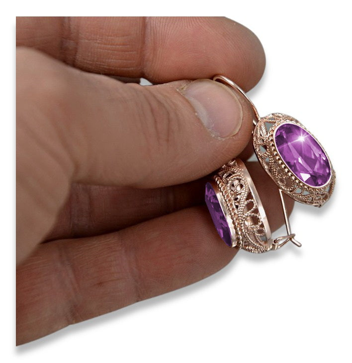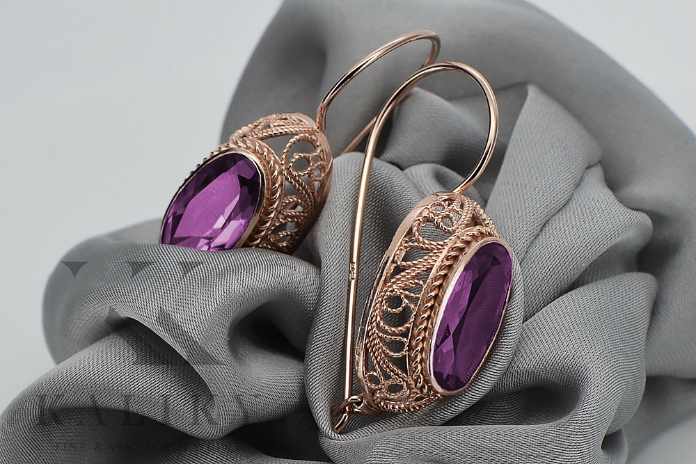 Rose pink 14k 585 gold amethyst earrings vec023 Vintage Russian Soviet style