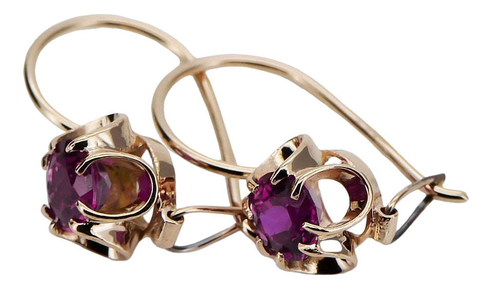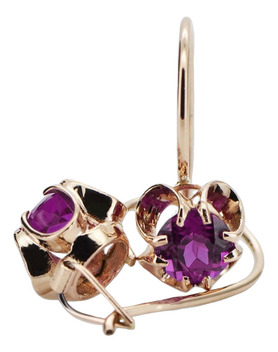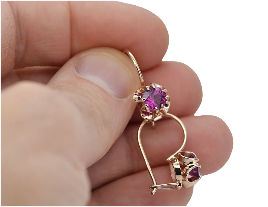 Rose pink 14k 585 gold amethyst earrings vec035 Vintage Russian Soviet style
