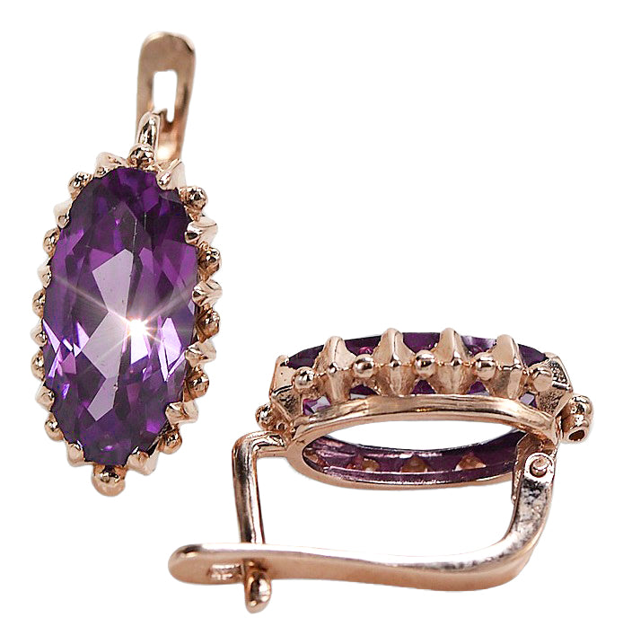 Rose pink 14k 585 gold amethyst earrings vec174 Vintage vec174r-am