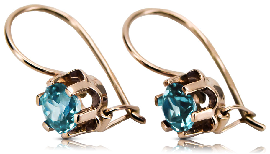 Rose pink 14k 585 gold aquamarine earrings vec019 Vintage Russian Soviet style vec019r-aq