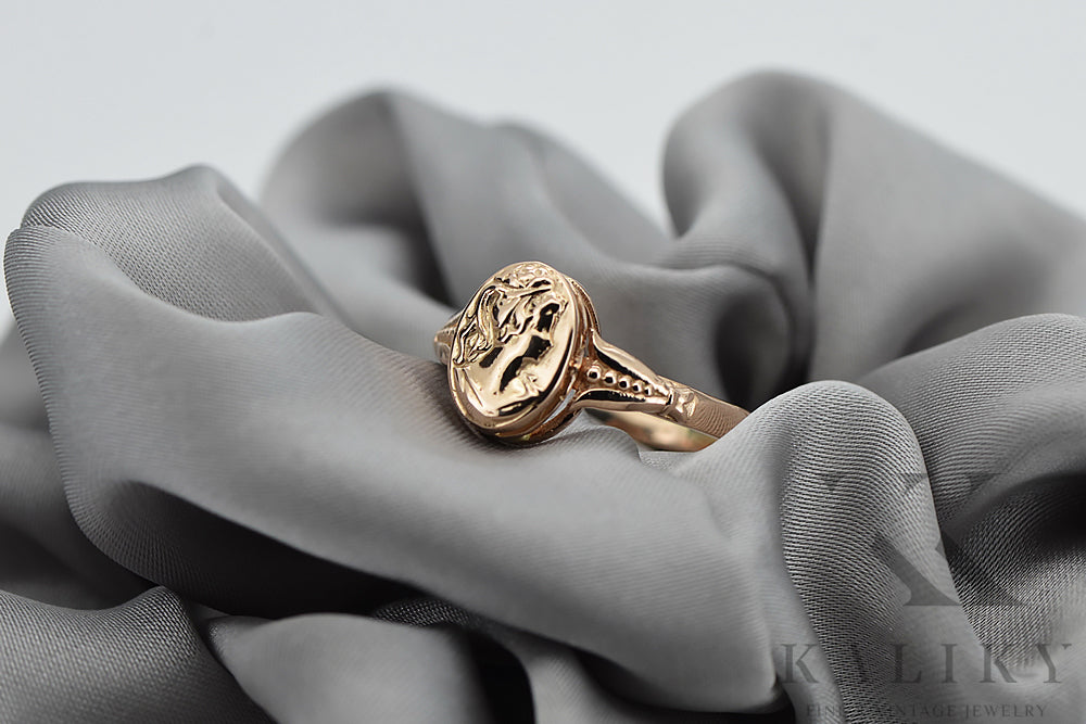Rose pink 14k 585 gold Camea ring vrn001 Russian Soviet Vintage style jewelry