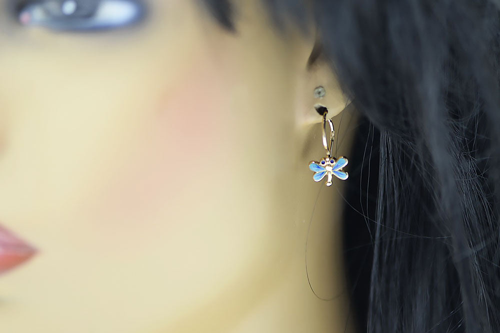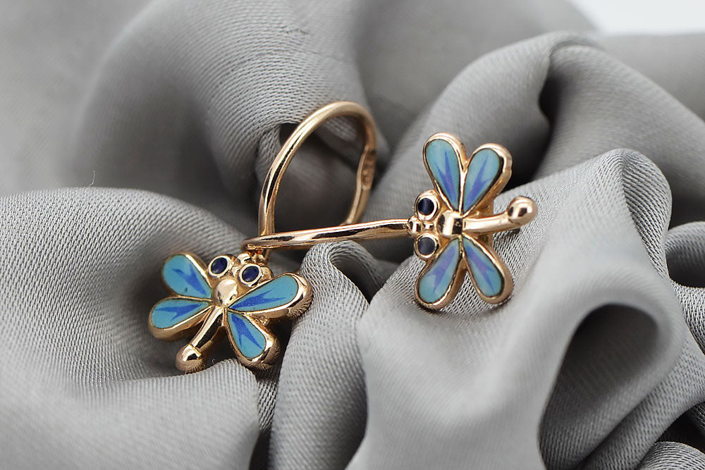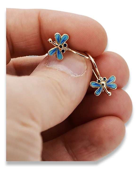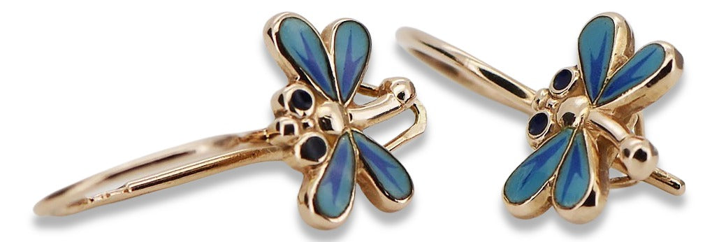 Rose pink 14k 585 gold dragonfly earrings ven153