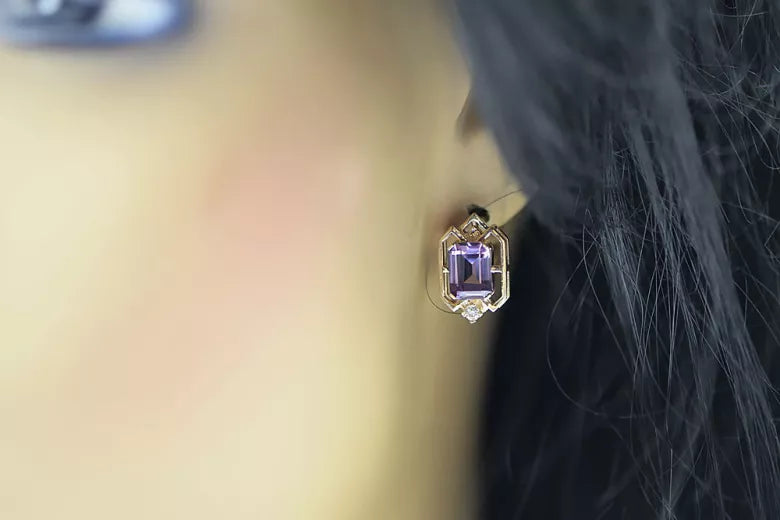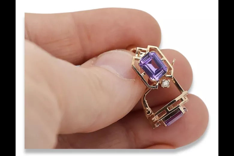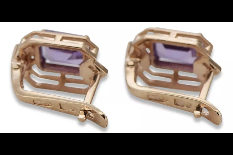 Rose pink 14k 585 gold earrings setting vec020 Vintage Russian Soviet style vec020r-st
