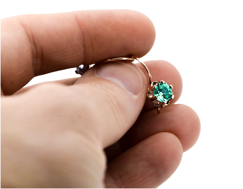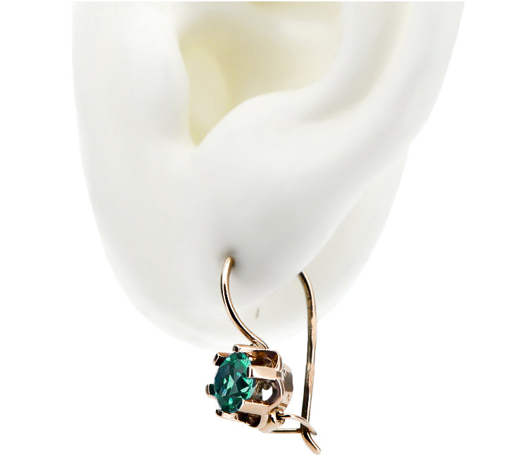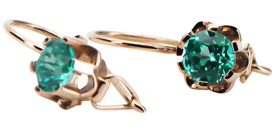 Rose pink 14k 585 gold emerald earrings vec019 Vintage Russian Soviet style vec019r-em