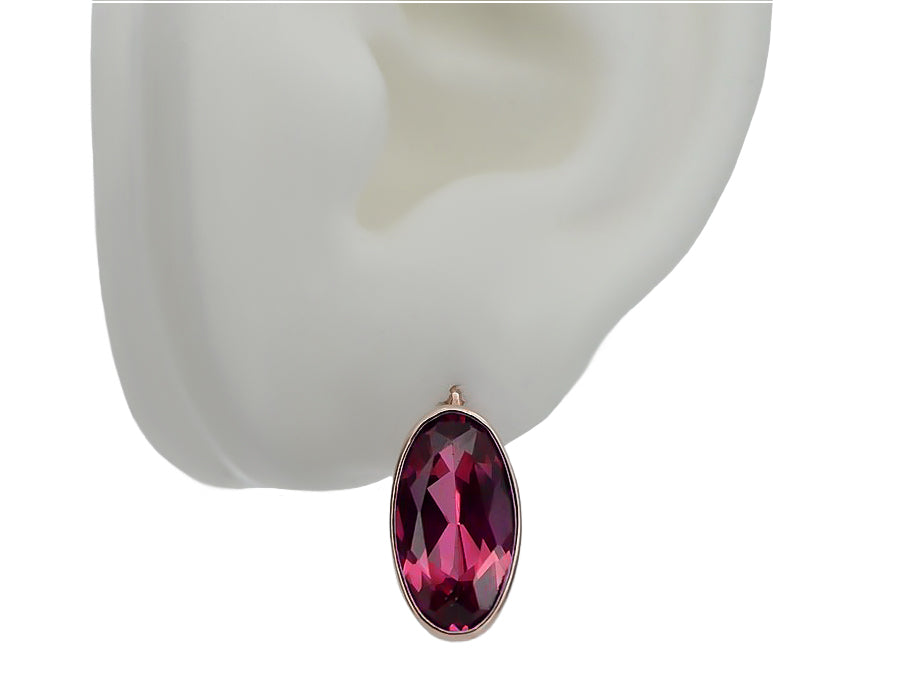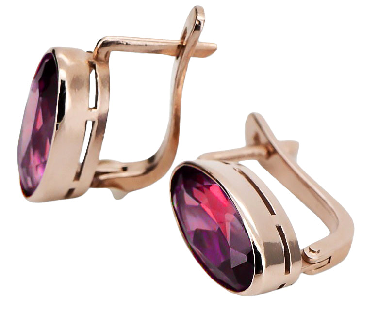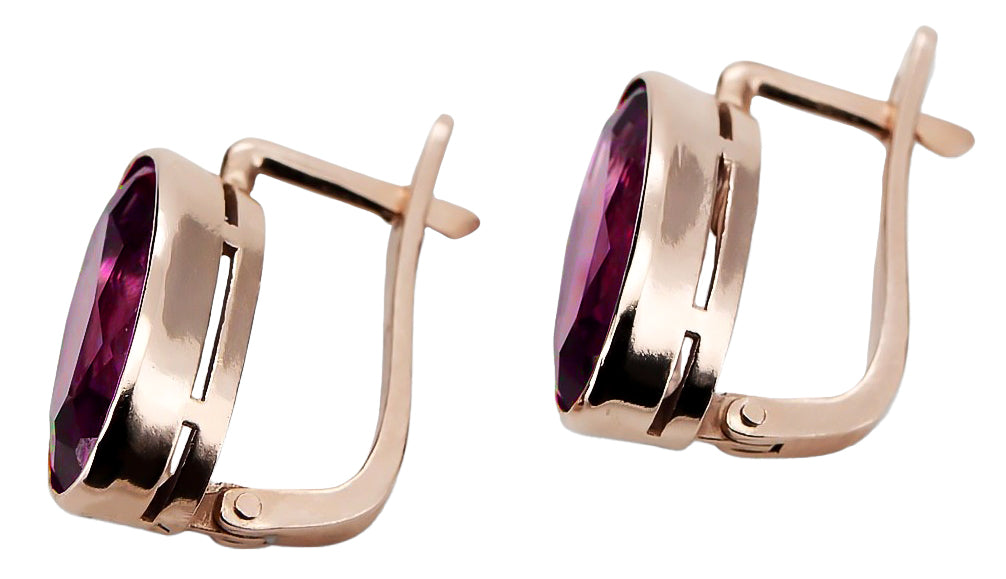 Rose pink 14k 585 gold ruby earrings vec001 Vintage Russian Soviet style