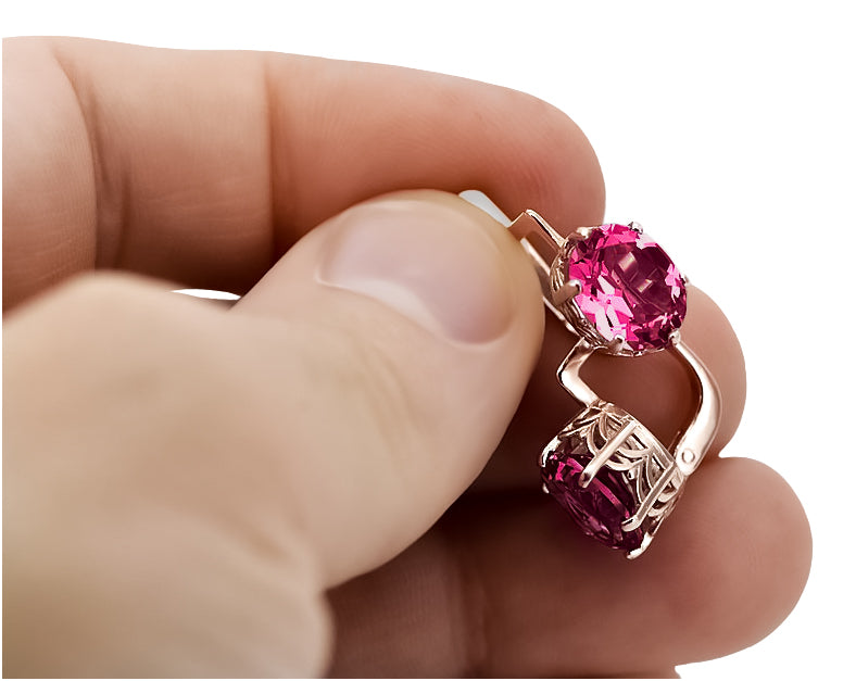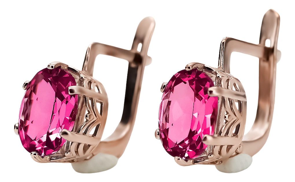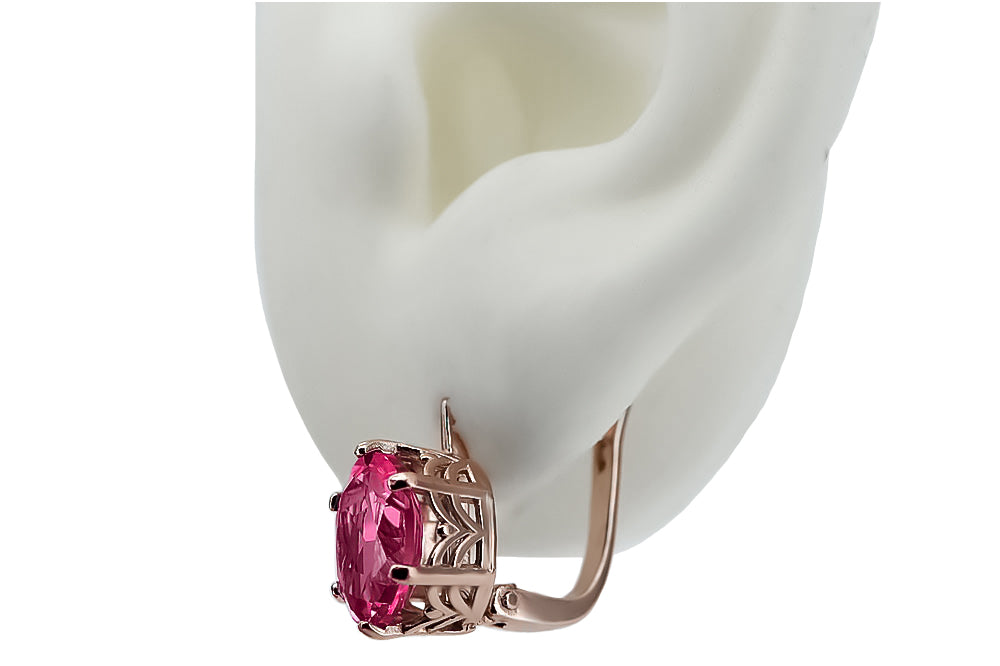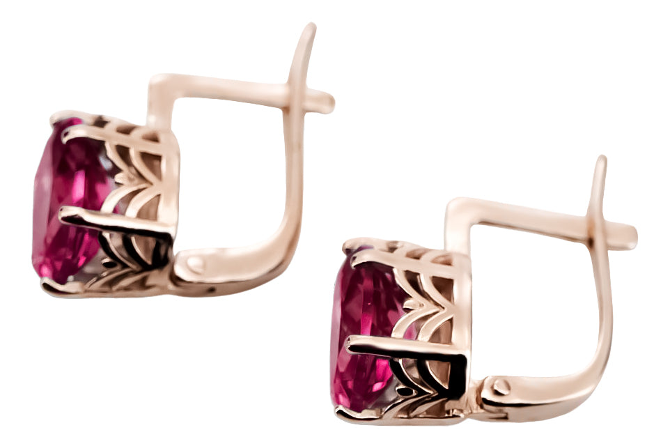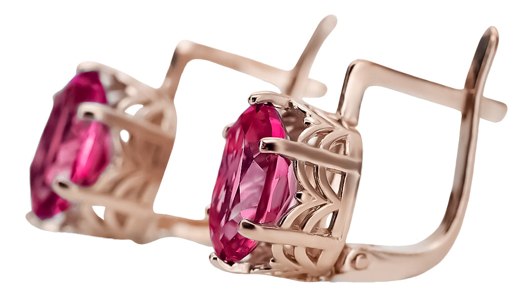 Rose pink 14k 585 gold ruby earrings vec003 Vintage Russian Soviet style vec003r-rb