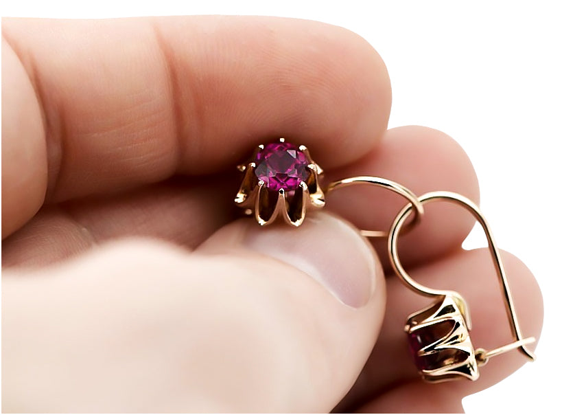 Rose pink 14k 585 gold ruby earrings vec092 Vintage Russian Soviet style vec092r-rb