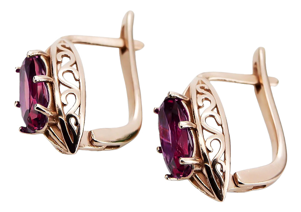 Rose pink 14k 585 gold ruby earrings vec141 Vintage vec141r-rb