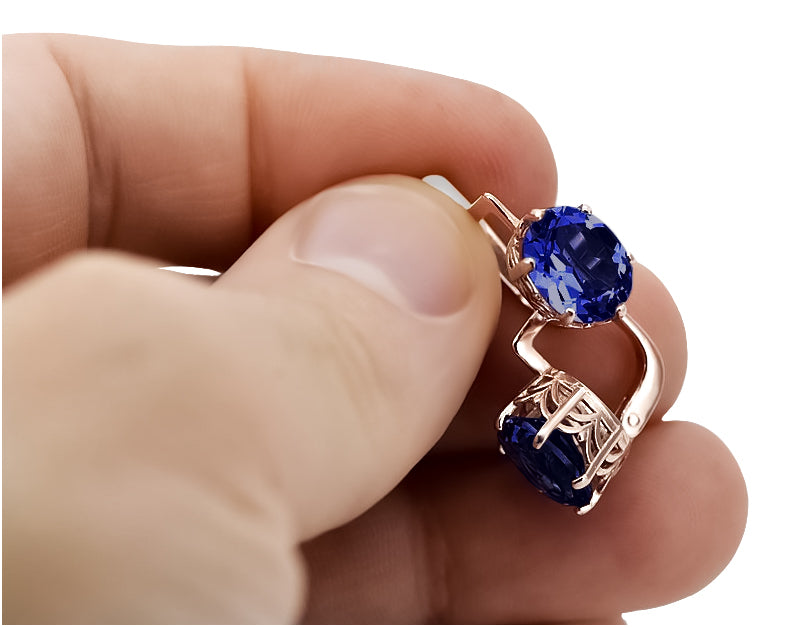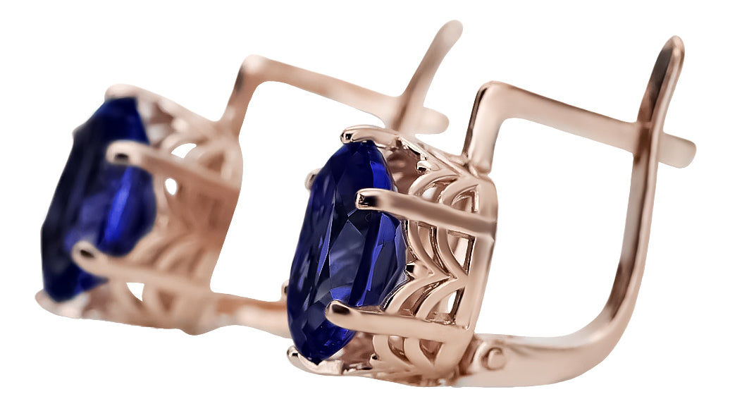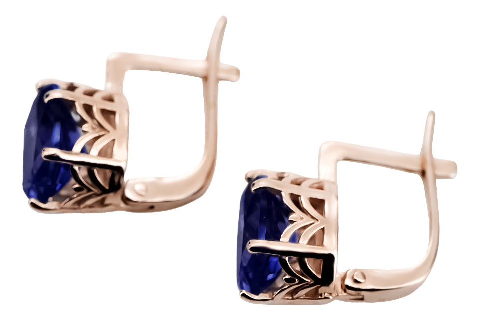 Rose pink 14k 585 gold sapphire earrings vec003 Vintage Russian Soviet style