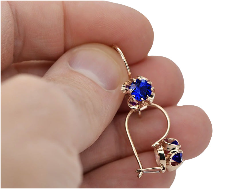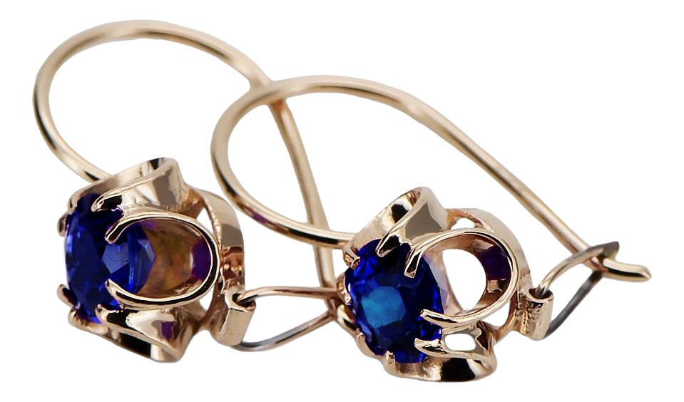 Rose pink 14k 585 gold sapphire earrings vec035 Vintage Russian Soviet style