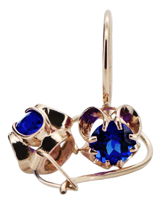 Rose pink 14k 585 gold sapphire earrings vec035 Vintage Russian Soviet style vec035r-sp