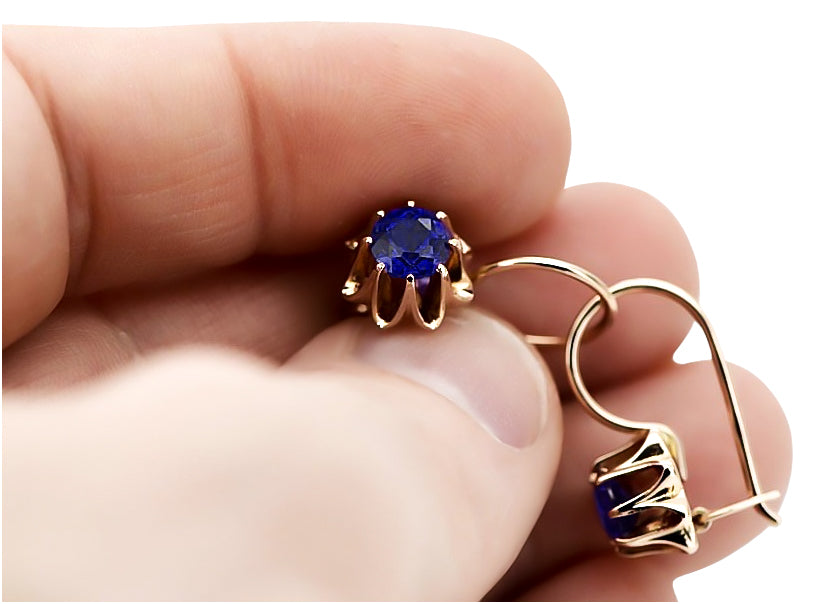 Discover the captivating charm of Russian vintage jewelry. These 14k gold sapphire earrings are a perfect example of the meticulous artistry and enduring elegance that defines this era.