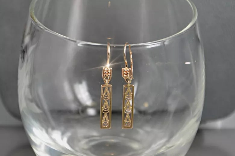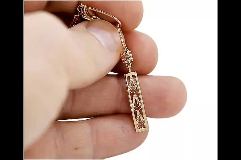 Rose pink 14k 585 gold Vintage Hanging earrings ven020