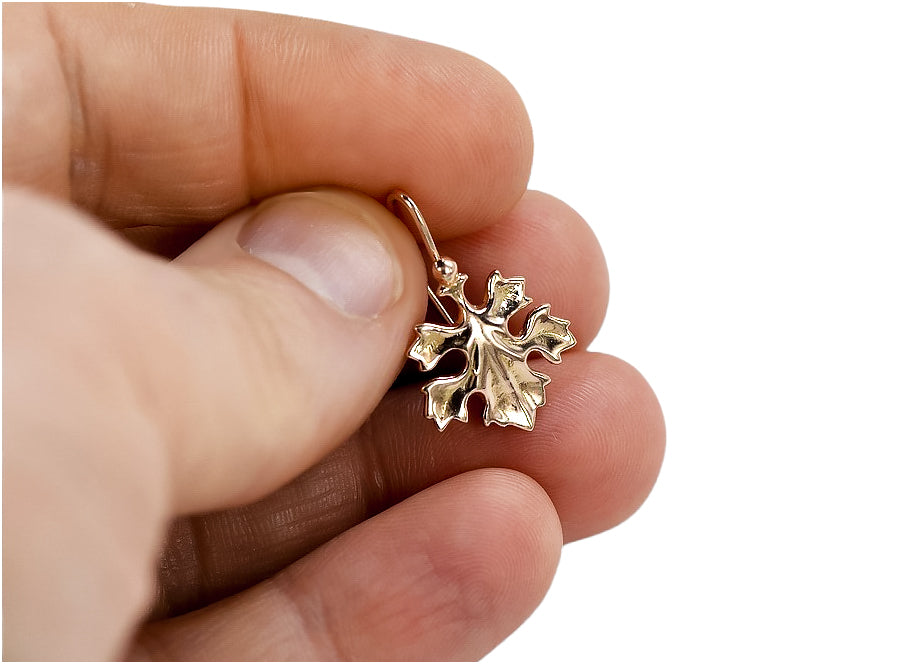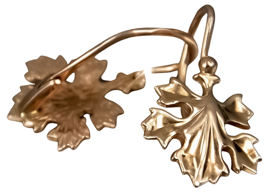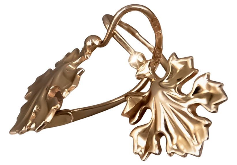 Rose pink 14k 585 gold Vintage leaf earrings ven047