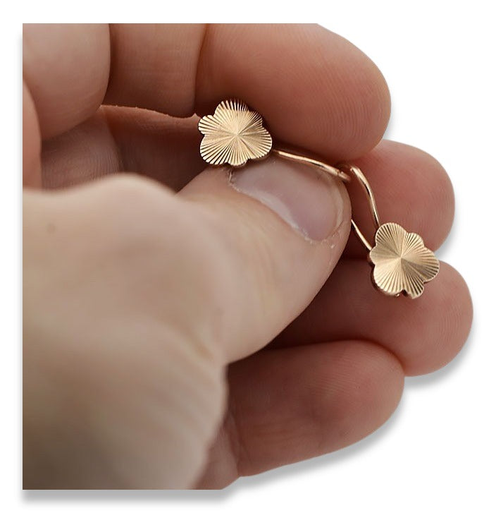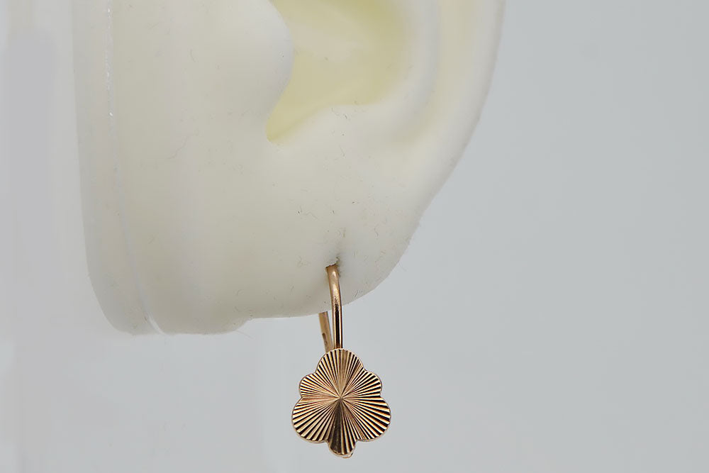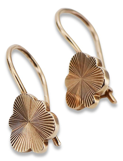 Rose pink 14k 585 gold Vintage leaf earrings ven165