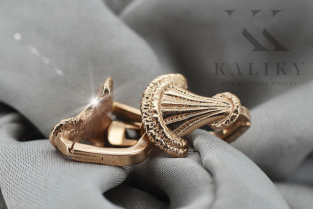 Rose pink 14k 585 gold Vintage leaf earrings ven214