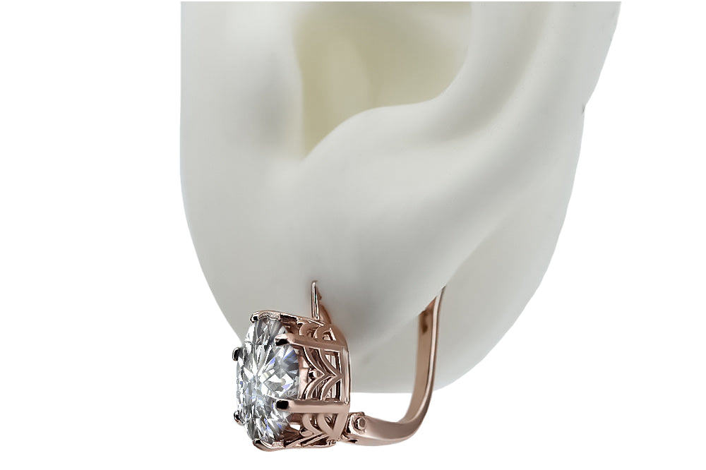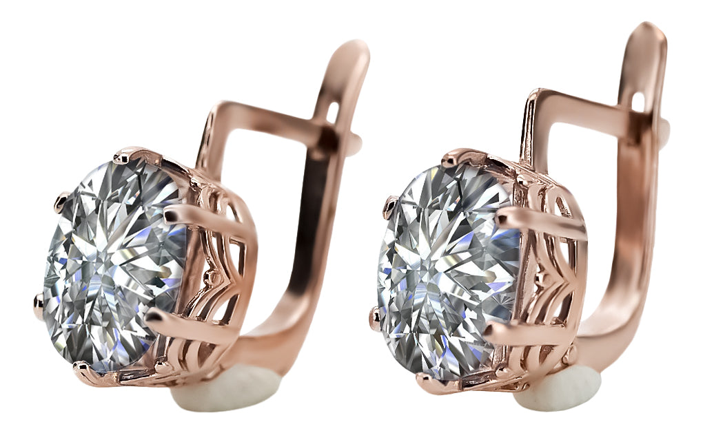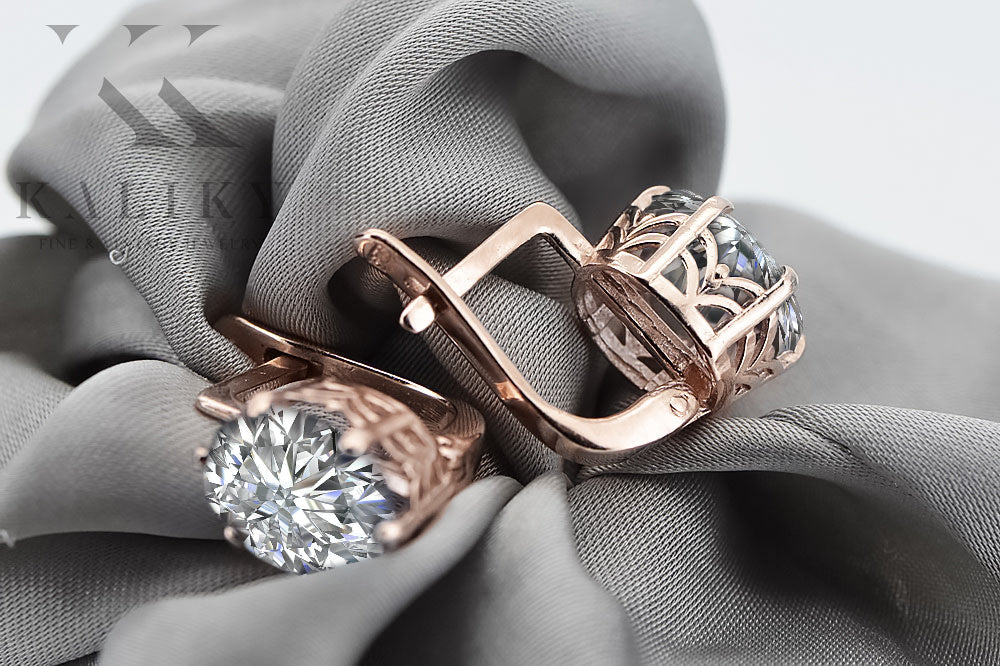 Rose pink 14k 585 gold zircon earrings vec003 Vintage Russian Soviet style vec003r-zi