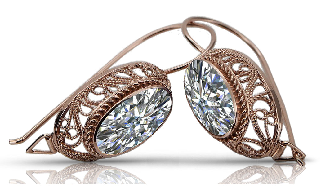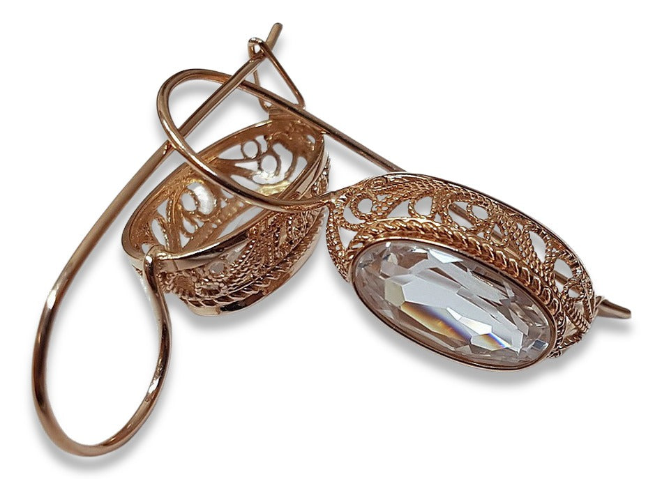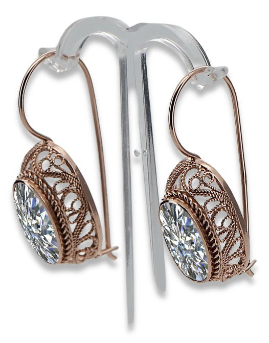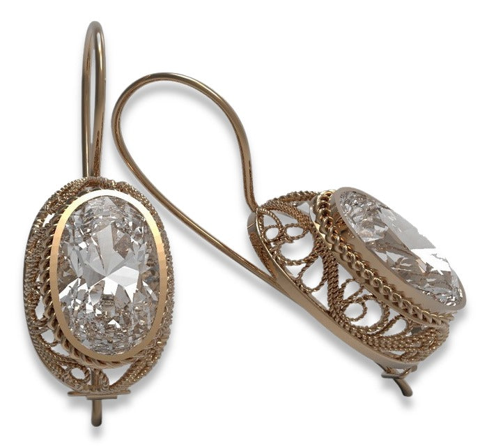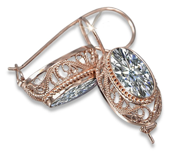 Rose pink 14k 585 gold zircon earrings vec023 Vintage Russian Soviet style