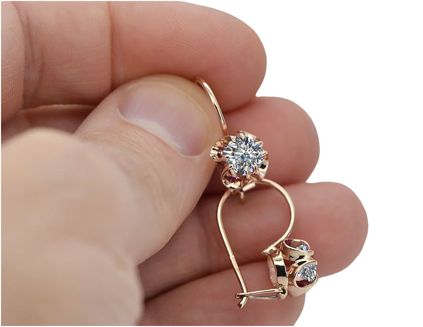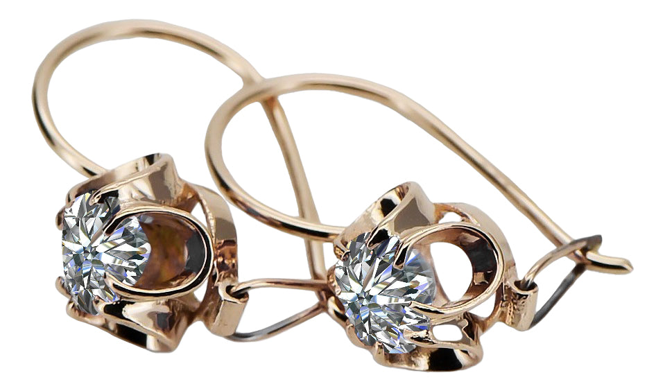 Rose pink 14k 585 gold zircon earrings vec035 Vintage Russian Soviet style