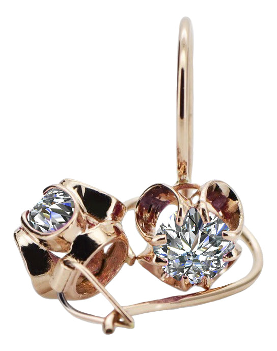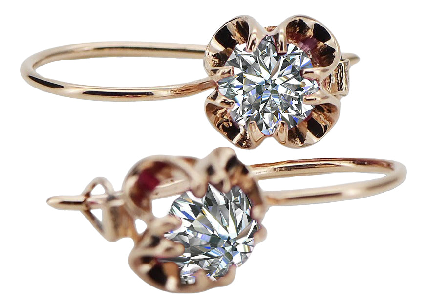 Rose pink 14k 585 gold zircon earrings vec035 Vintage Russian Soviet style vec035r-zi