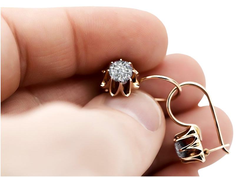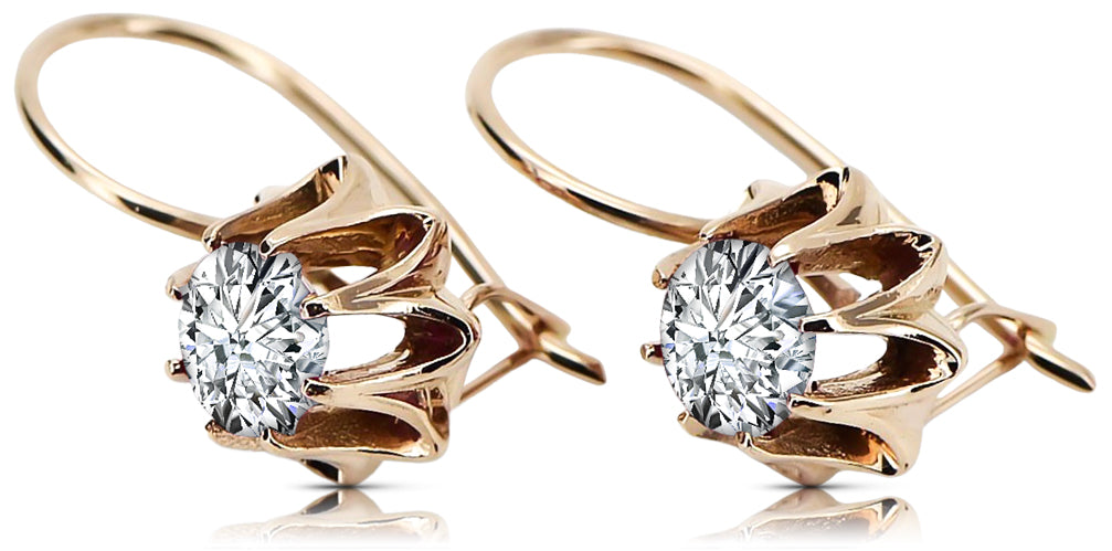 Rose pink 14k 585 gold zircon earrings vec092 Vintage Russian Soviet style