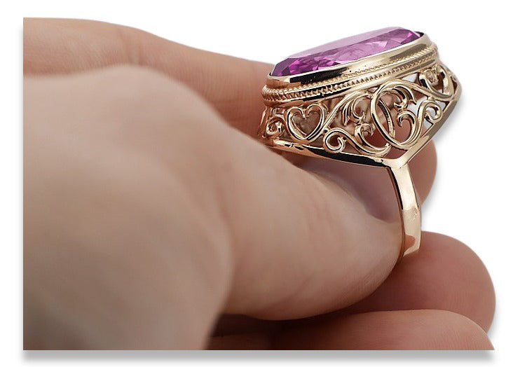 Rose pink 14k gold 585 amethyst ring vrc184 Vintage