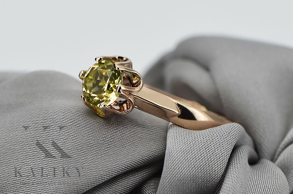 Rose pink 14k gold 585 Peridot ring vrc122 Vintage