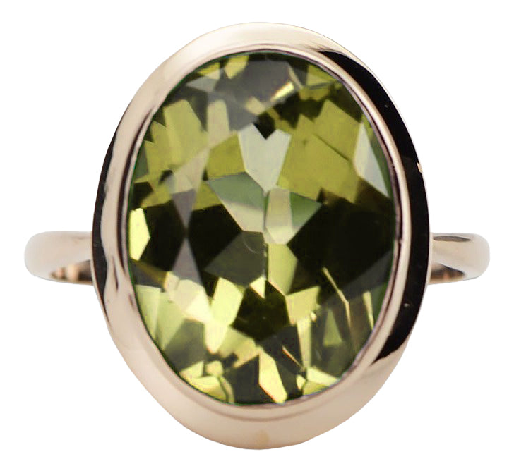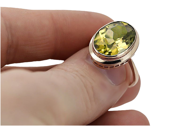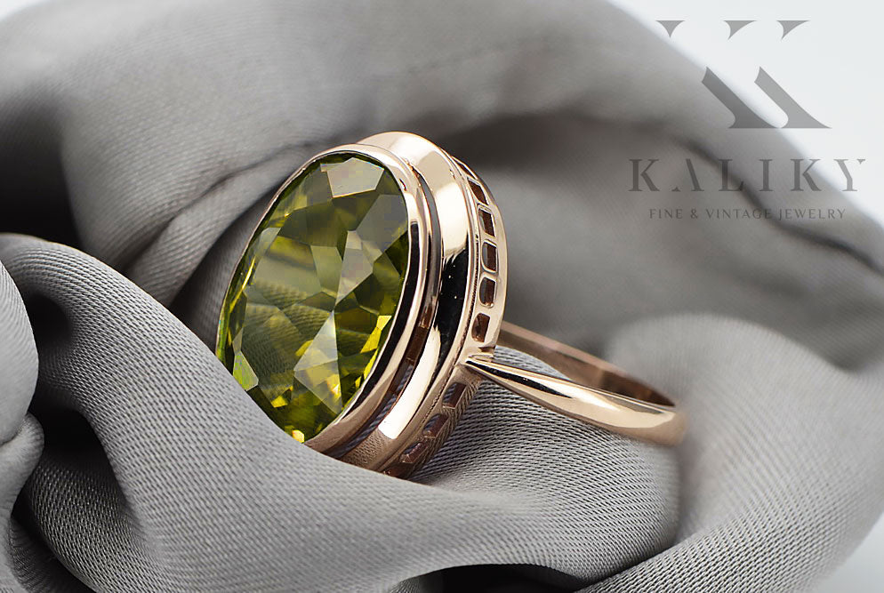 Rose pink 14k gold 585 Peridot ring vrc285 Vintage Russian Soviet style