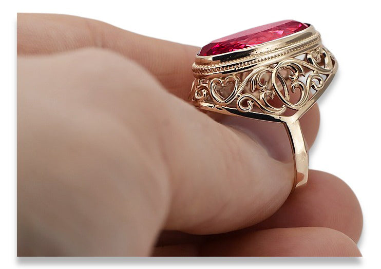 Rose pink 14k gold 585 ruby ring vrc184 Vintage