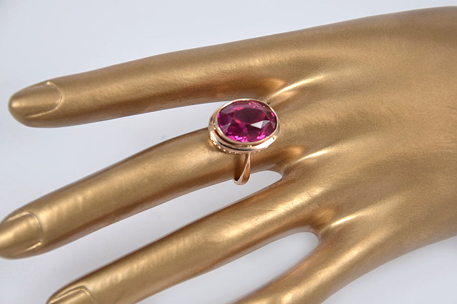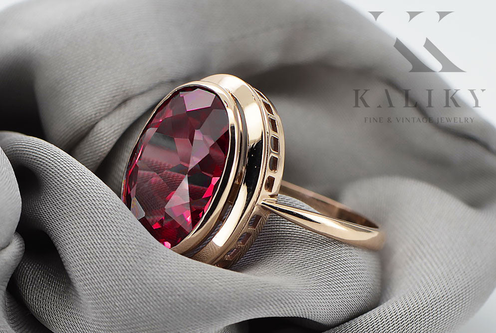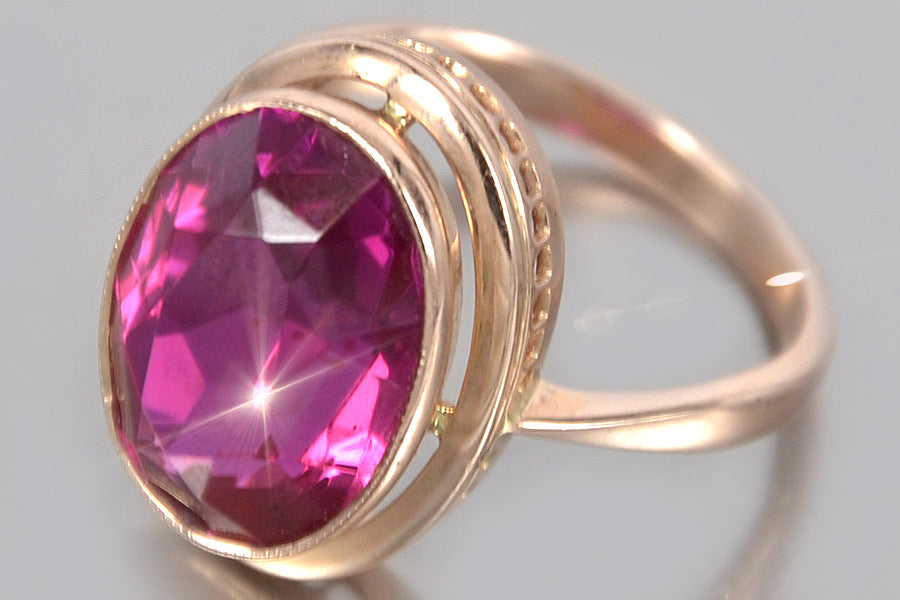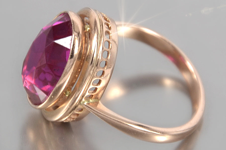 Rose pink 14k gold 585 Ruby ring vrc285 Vintage Russian Soviet style