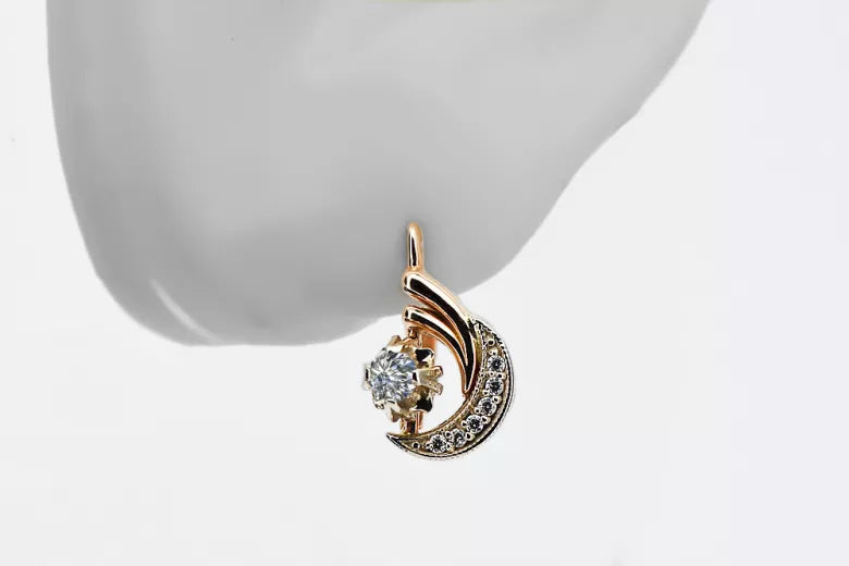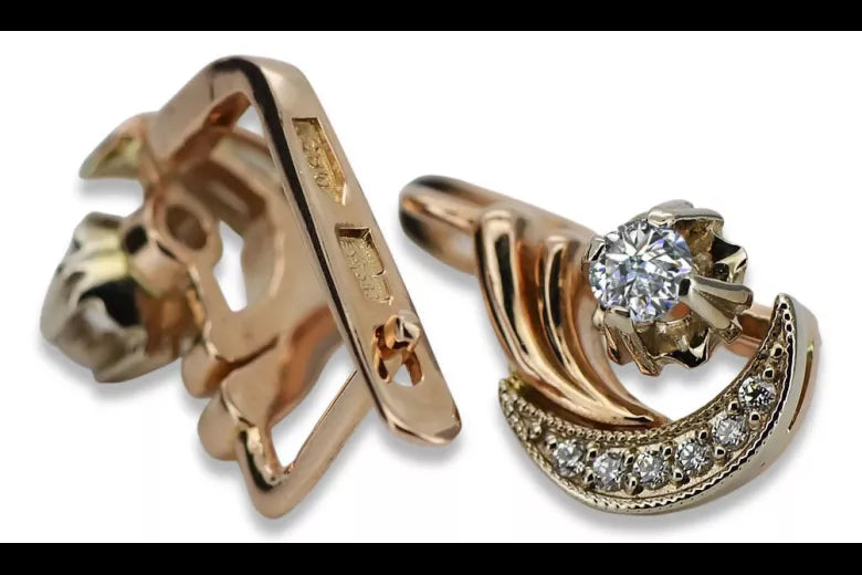 Rose pink white 14k gold585 diamond earrings ved093rw Vintage Russian Soviet style ved093rw-di