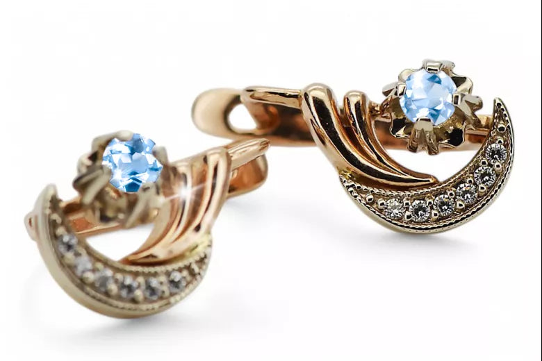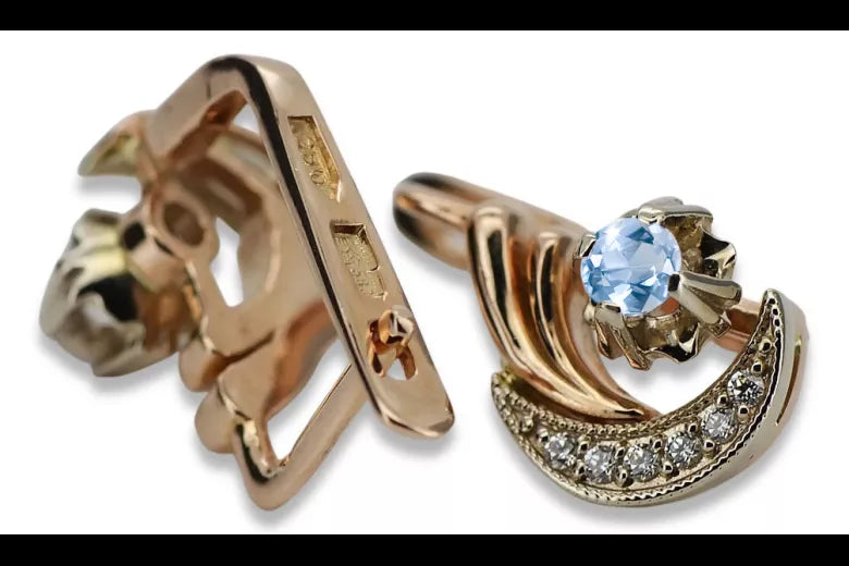 Russian 14K Rose White Gold Aquamarine diamonds earrings Russian Soviet Vintage style ved093rw-aq
