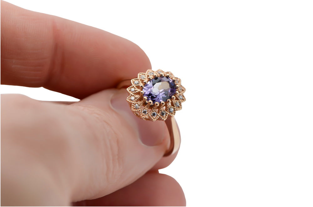 Russian rose pink Vintage style 14K gold Alexandrite Ring crc012r