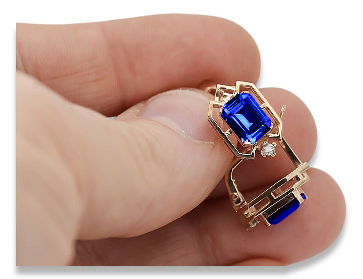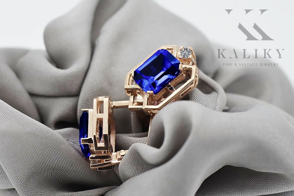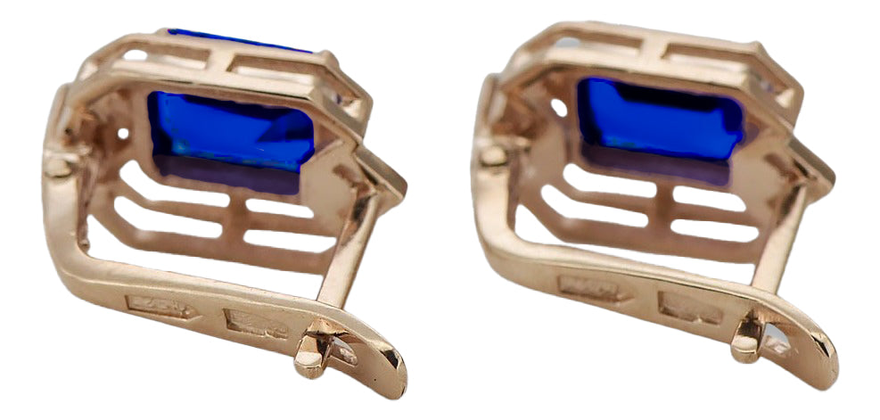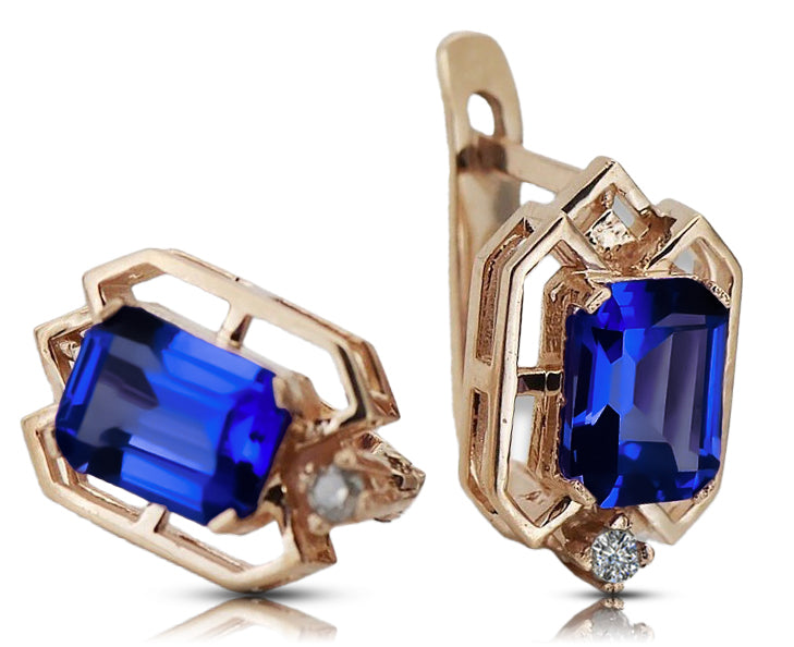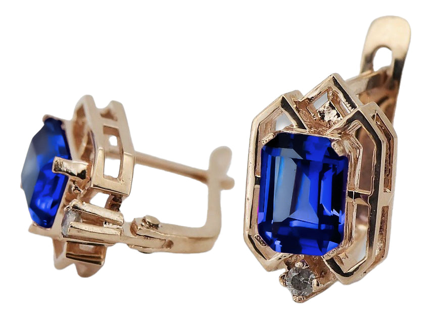 Sapphire diamonds Vintage Earrings craft Original 14K Rose Gold vec020r