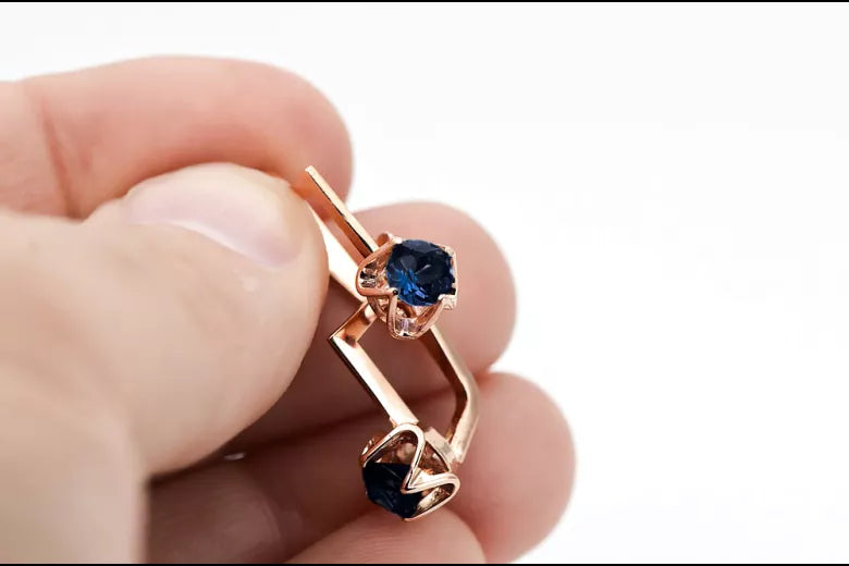 Sapphire Original Vintage 14K Rose Gold Earrings Vintage style vec005r