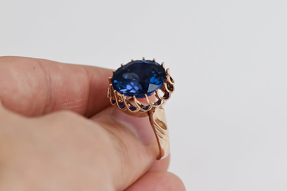 Sapphire Original Vintage 14K Rose Gold Ring Vintage Jewlery vrc035r