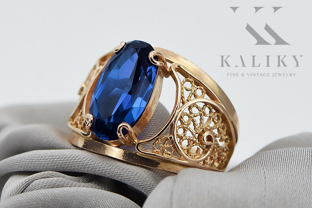 Sapphire Original Vintage 14K Rose Gold Ring Vintage vrc057r
