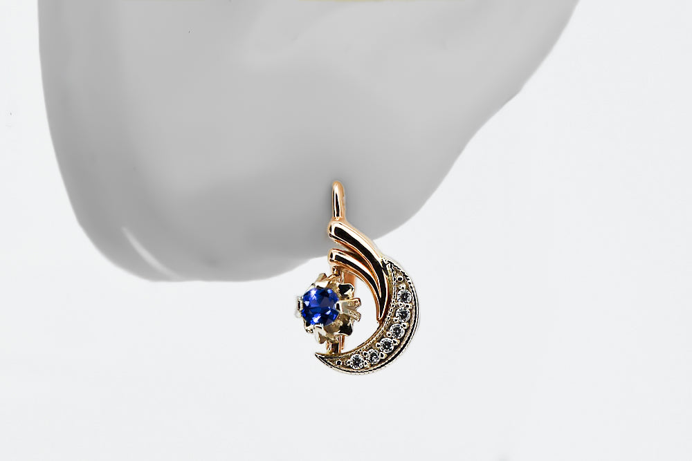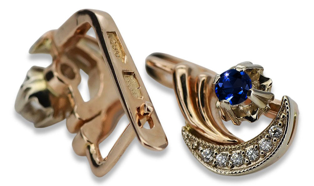 These earrings are a perfect embodiment of luxury gold jewelry, designed for the discerning woman who appreciates the artistry and history woven into each piece. The delicate interplay of rose and white gold creates a captivating contrast, enhancing the brilliance of the sapphire and cubic zircon stones. Embrace the legacy of Soviet jewelry with these stunning vintage earrings.