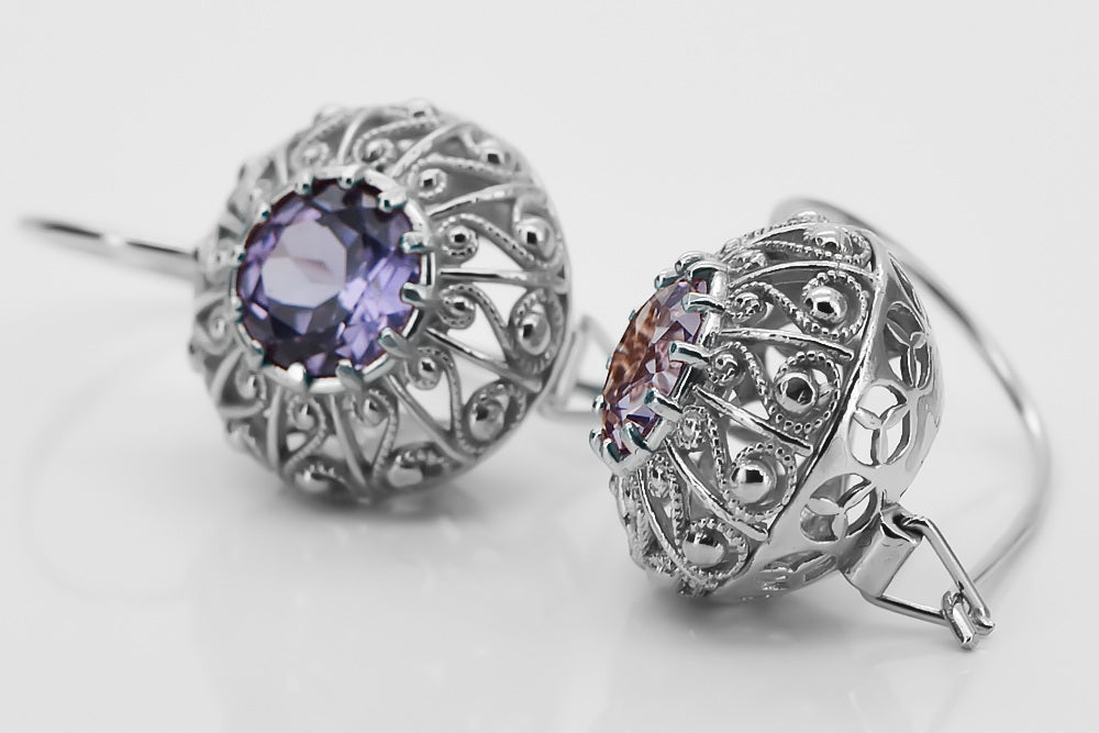Silver 925 Alexandrite earrings vec002s Russian Soviet style vec002s-ax