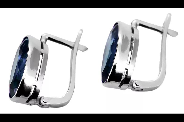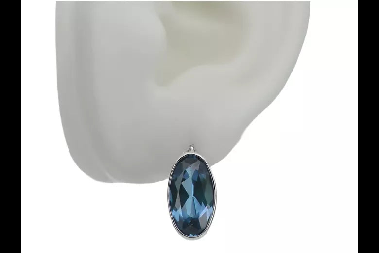 Silver 925 aquamarine Vintage earrings vec001s Russian Soviet style vec001s-aq