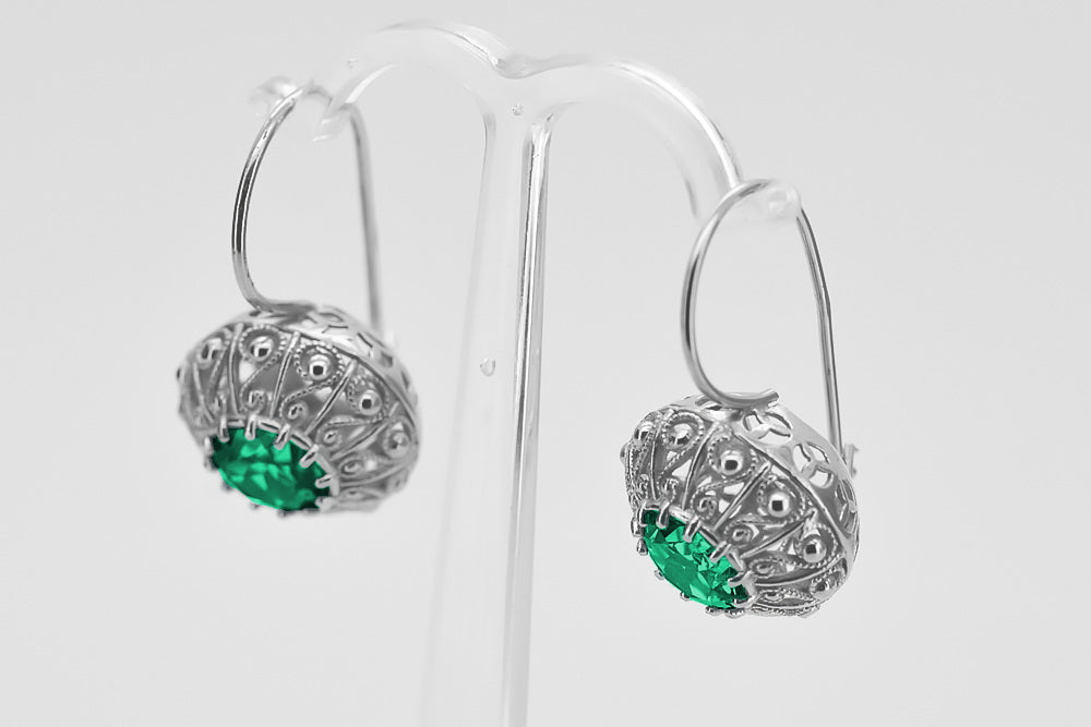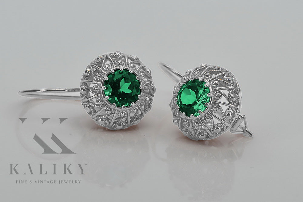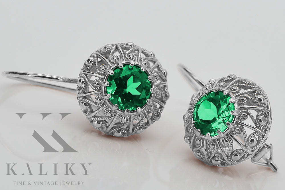 Silver 925 Emerald earrings vec002s Russian Soviet style vec002s-em