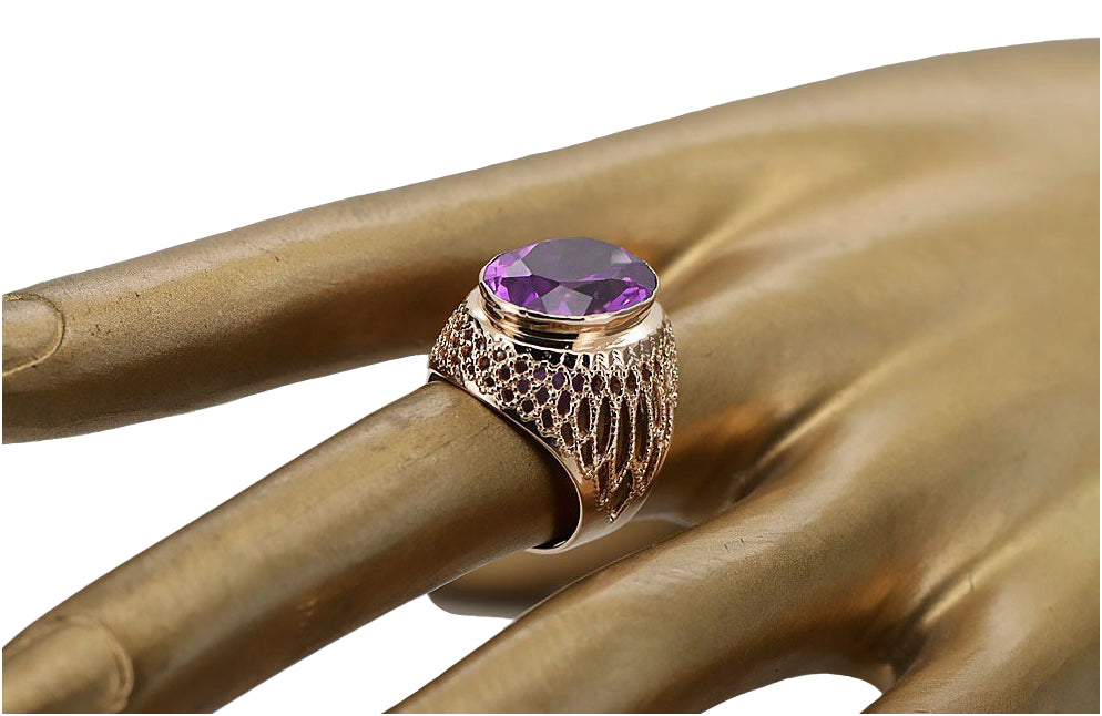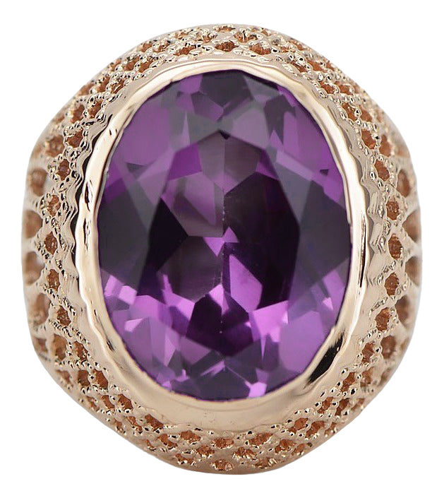 Silver 925 Rose Gold Plated Amethyst Ring vrc089rp Vintage