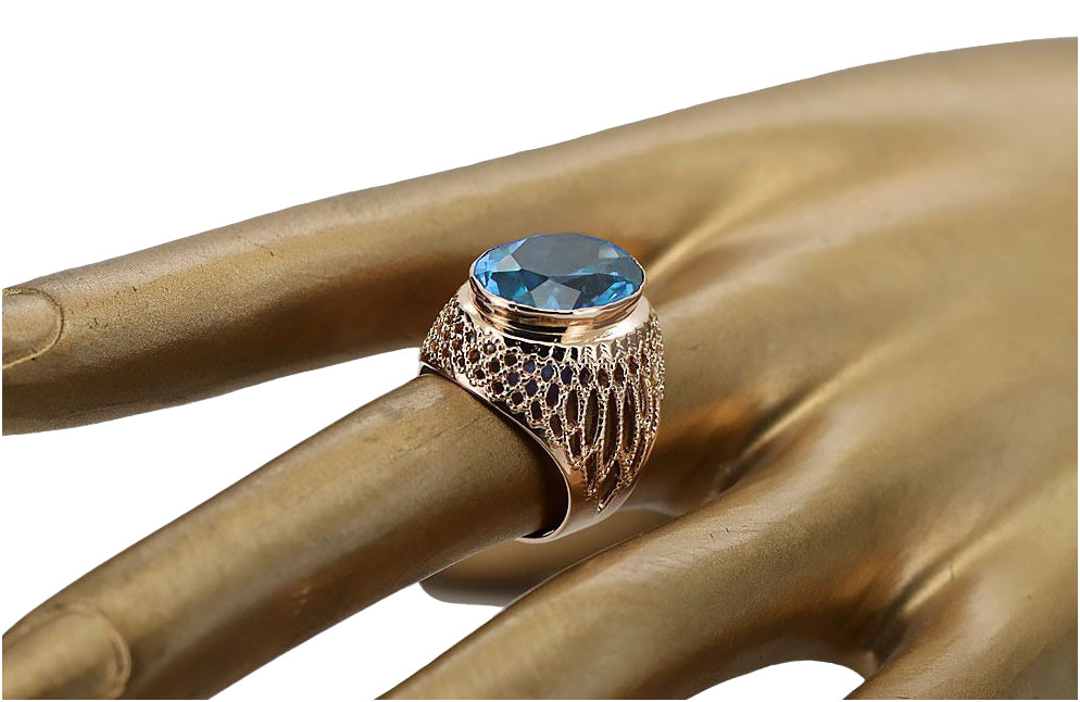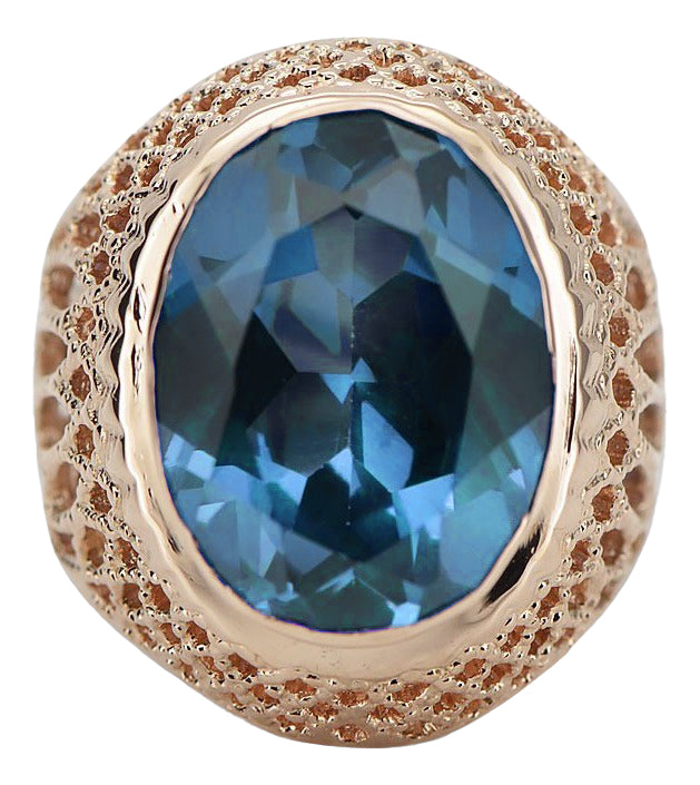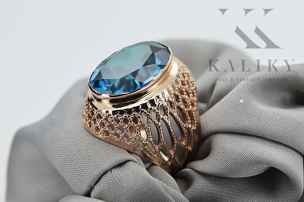 Silver 925 Rose Gold Plated Aquamarine Ring vrc089rp Vintage