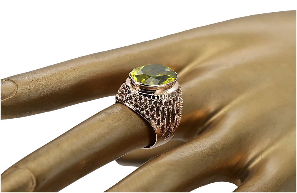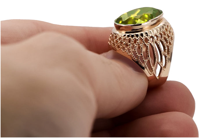 Silver 925 Rose Gold Plated Peridot Ring vrc089rp Vintage